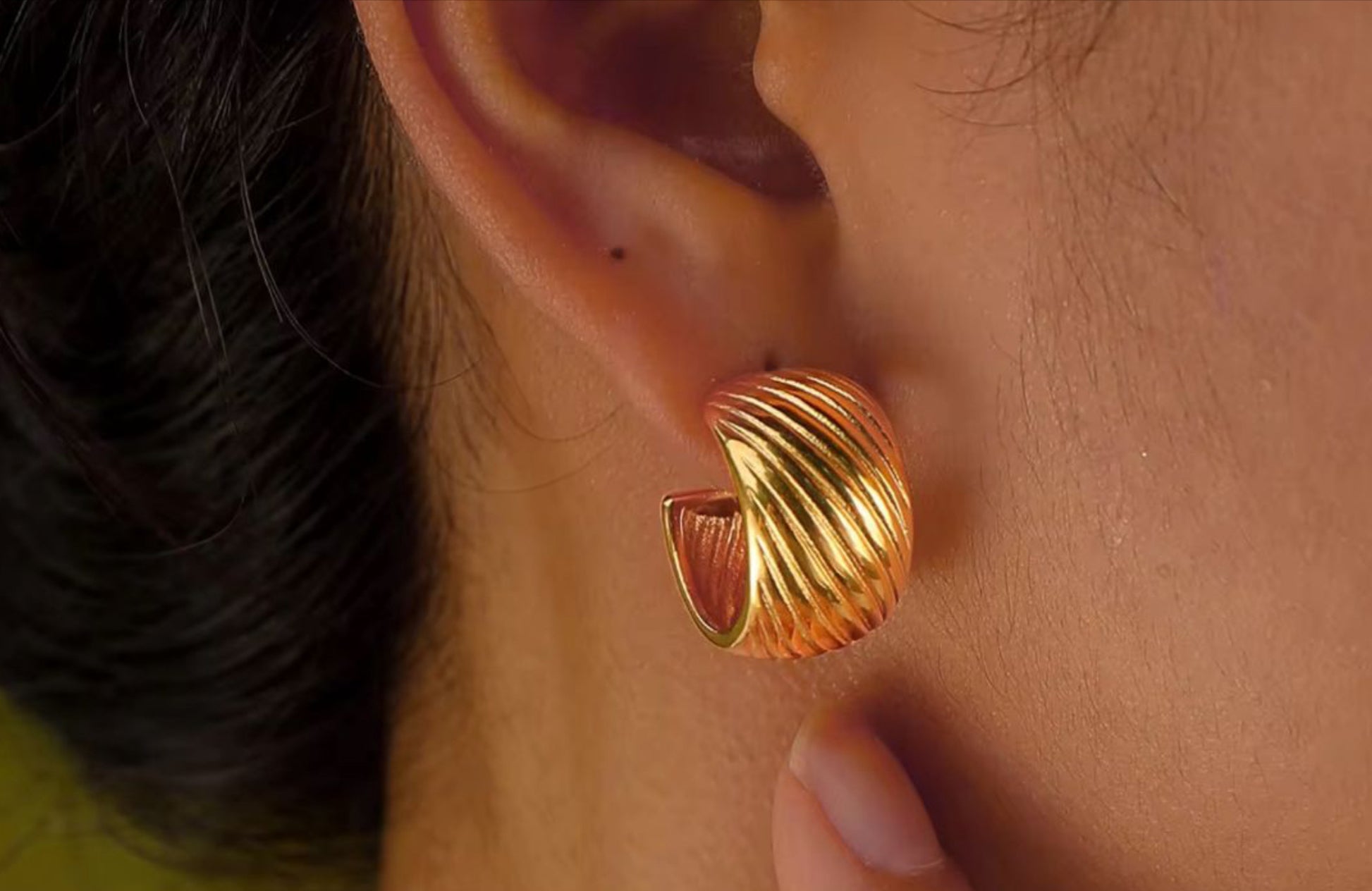 18K Gold Plated Textured Hoop Earings Non-Tarnish